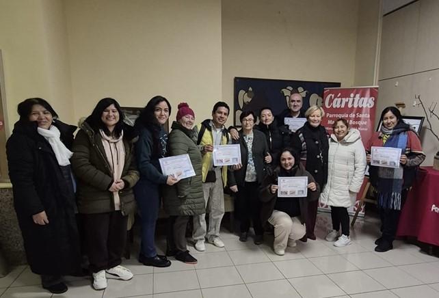 También se ha abierto un espacio para reconocer los talleres realizados sobre el cuidado y atención a personas mayores y niños. Se ha destacado de manera especial la labor de Nieves, miembro del Instituto Secular Operarias Parroquiales Magdalena Aulina, quien ha estado siempre a disposición de la Cáritas parroquial y ha sabido transmitir, con eficiencia y ternura, su experiencia en el ámbito de la salud junto a las personas más vulnerables.