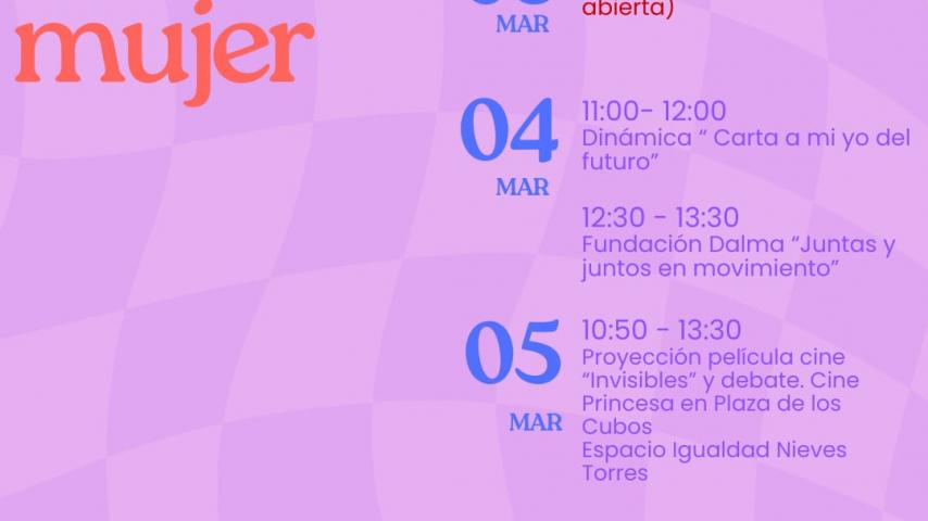 En este sentido, esta semana la agenda está marcada con M de mujer. Estas son algunas de las actividades que se van a llevar a cabo: