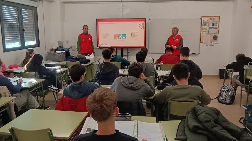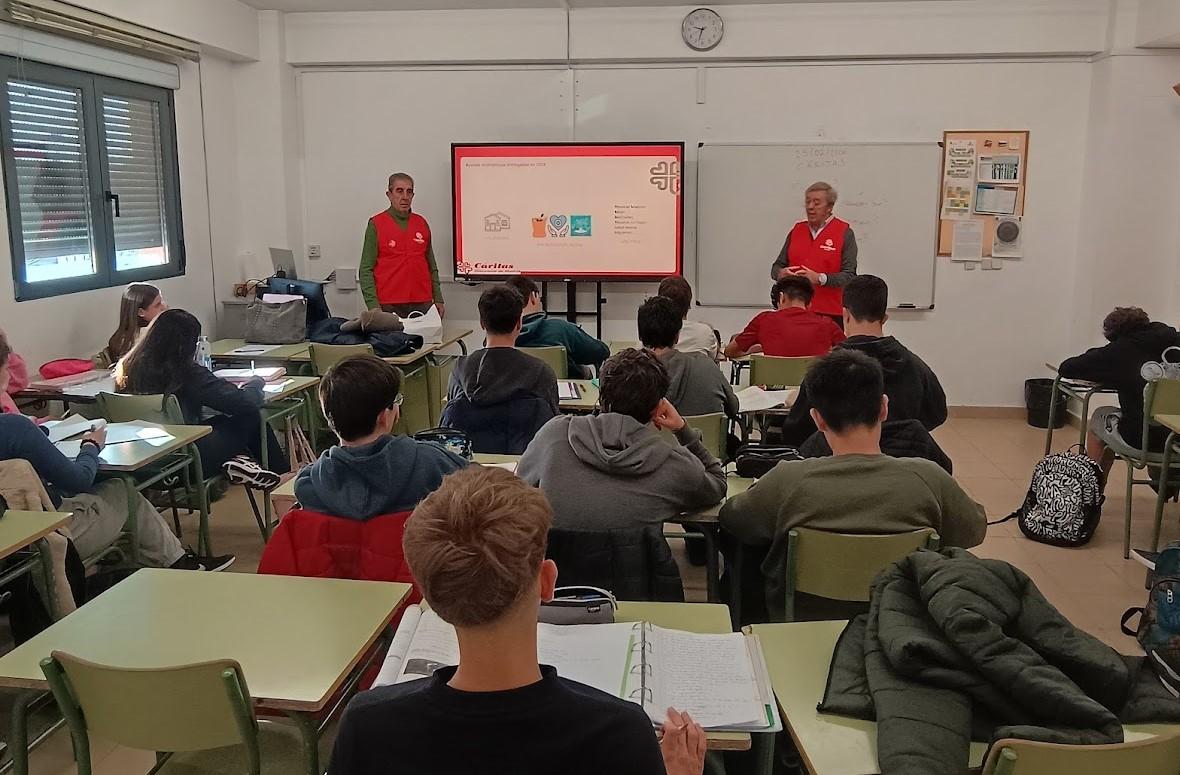 El Equipo ha impartido varias sesiones a 3º, 4º y 1º de Bachillerato, para acercarles la labor solidaria y el compromiso social de Cáritas Madrid con las personas más vulnerables. Durante las sesiones, el equipo ha presentado el trabajo que realiza Cáritas, subrayando que su misión va más allá de la ayuda puntual, se ofrece a las familias apoyo estructural, como buscar empleo, un hogar, o apoyo para hacer trámites.