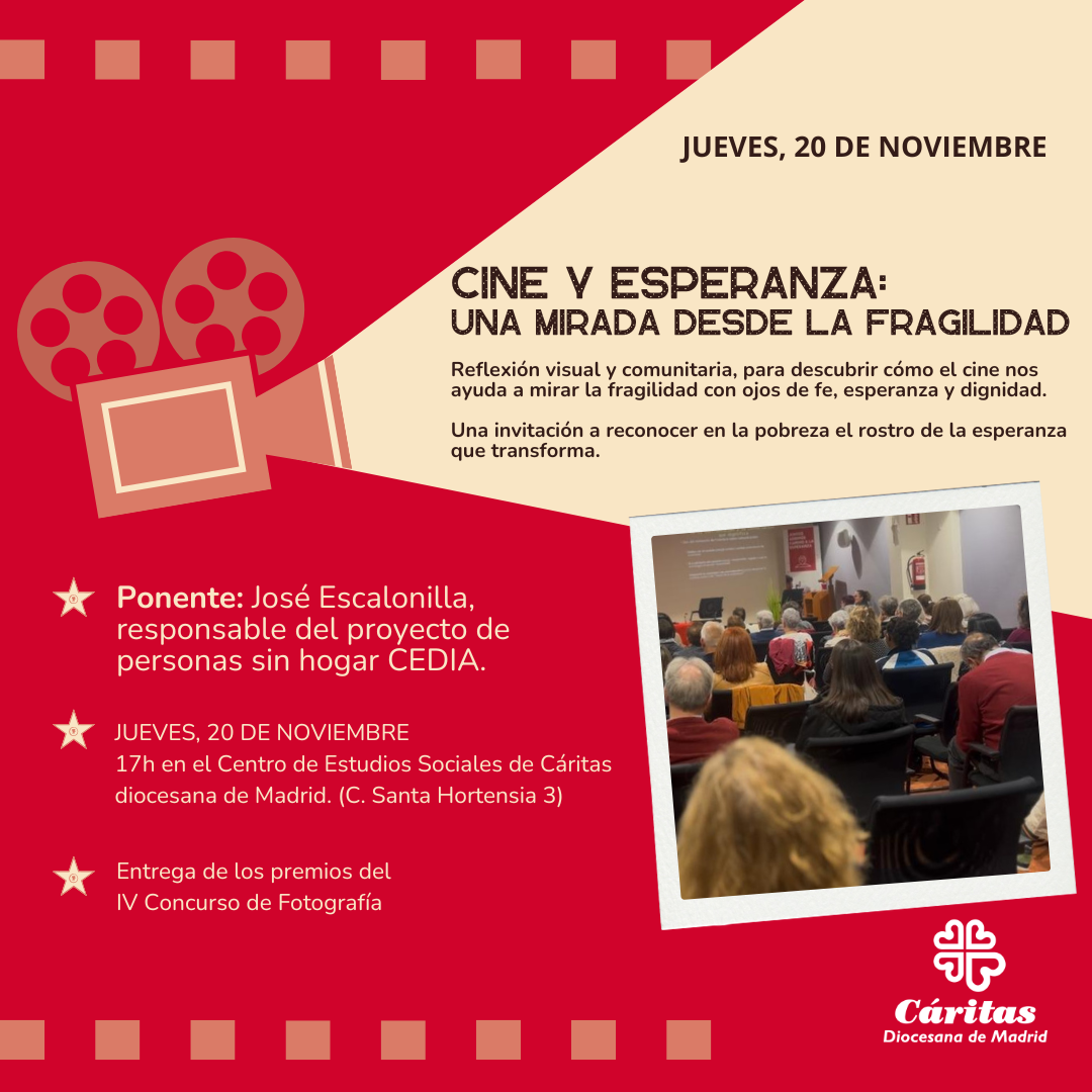 A través de fragmentos de películas, descubriremos cómo el cine puede ayudarnos a mirar la realidad con ojos nuevos y a reconocer en las personas que viven situaciones de fragilidad a verdaderos testigos de esperanza.