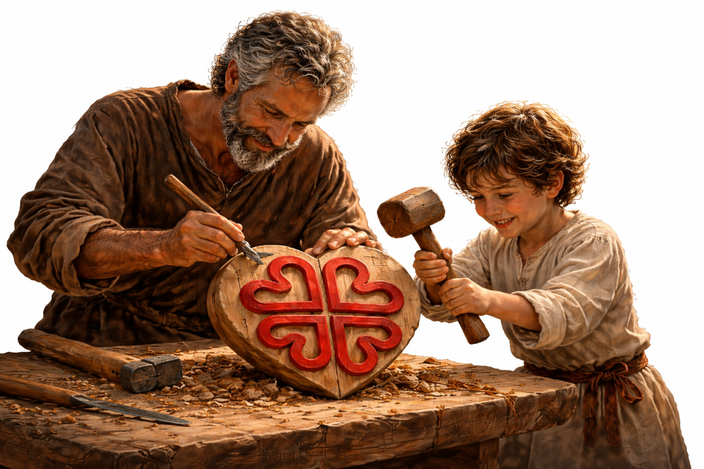 José es una figura humilde, quizá más cercana a nuestra propia esencia humana. Como padre, cumplió con dos tareas esenciales: ofrecer a su hijo unos valores que despertaron en él su vocación, la de amar a Dios; y, al mismo tiempo, cultivar en él el amor por su familia y por su oficio, el de carpintero que heredó.