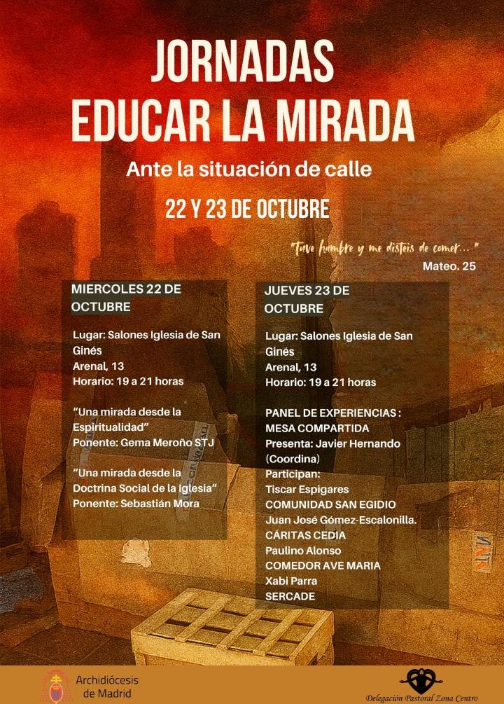 17 de Octubre de 2025La Archidiócesis de Madrid, a través de la Delegación Pastoral de la Zona Centro, impulsa las jornadas “Educar la mirada ante la situación de calle”, un encuentro para reflexionar, formarse y sensibilizarse sobre la realidad de las personas sin hogar. La iniciativa busca promover una mirada más humana, comprometida y compasiva, que ayude a reconocer la dignidad y el valor de cada persona, especialmente de quienes viven en la exclusión.