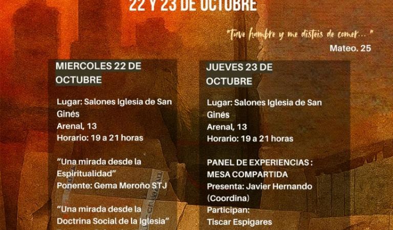 Las jornadas se celebrarán los días 22 y 23 de octubre, de 19:00 a 21:00 horas, en los salones de la Iglesia de San Ginés (Arenal, 13).