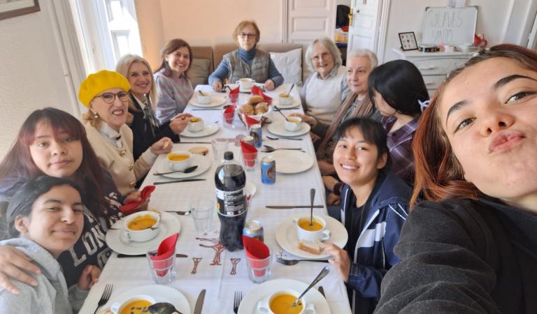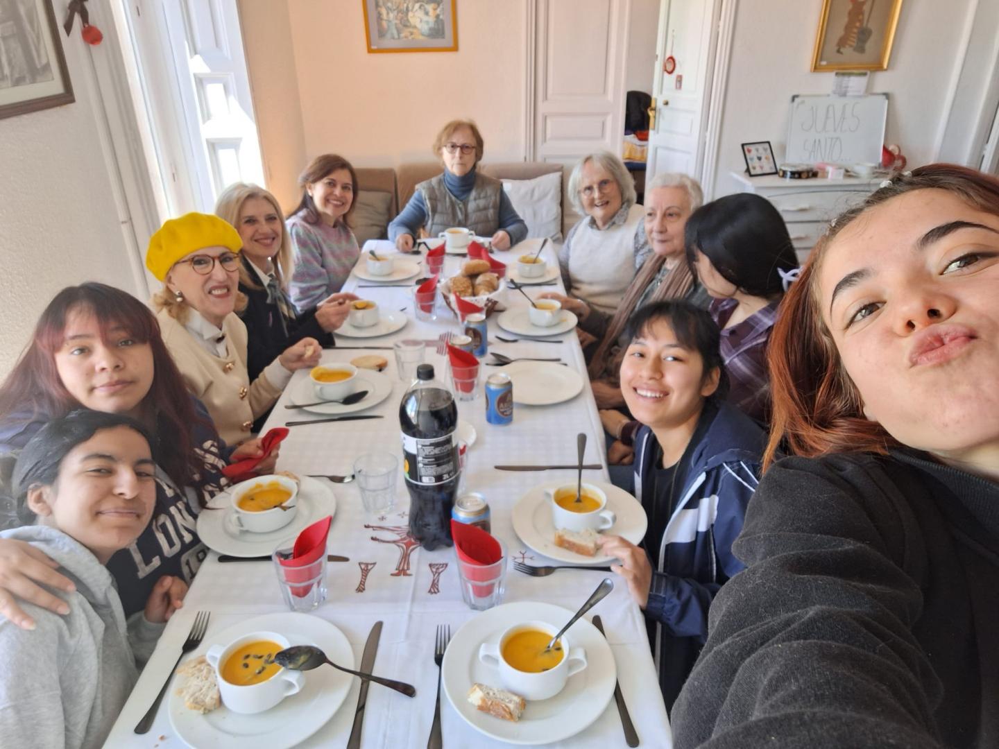 Todas las mujeres residentes, junto al equipo de vida y el equipo de voluntariado, se reunieron para compartir una comida preparada con esmero, convirtiendo este gesto cotidiano en un verdadero signo de fraternidad. En un ambiente sencillo y cuidado, la mesa se transformó en lugar de encuentro, de escucha y de reconocimiento mutuo.