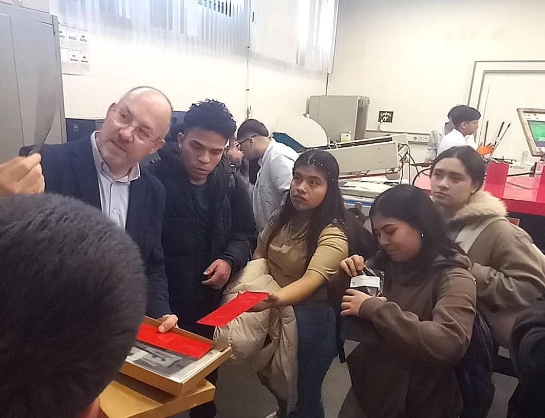 La primera fase se ha centrado en la preimpresión, donde los estudiantes han podido ver cómo se preparan los archivos digitales para la impresión y han aprendido sobre los diferentes tipos de formatos y soportes utilizados en la industria.
