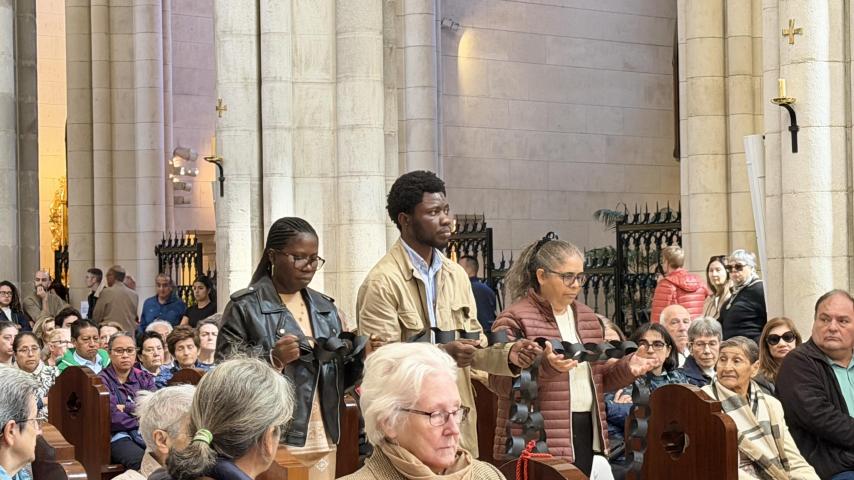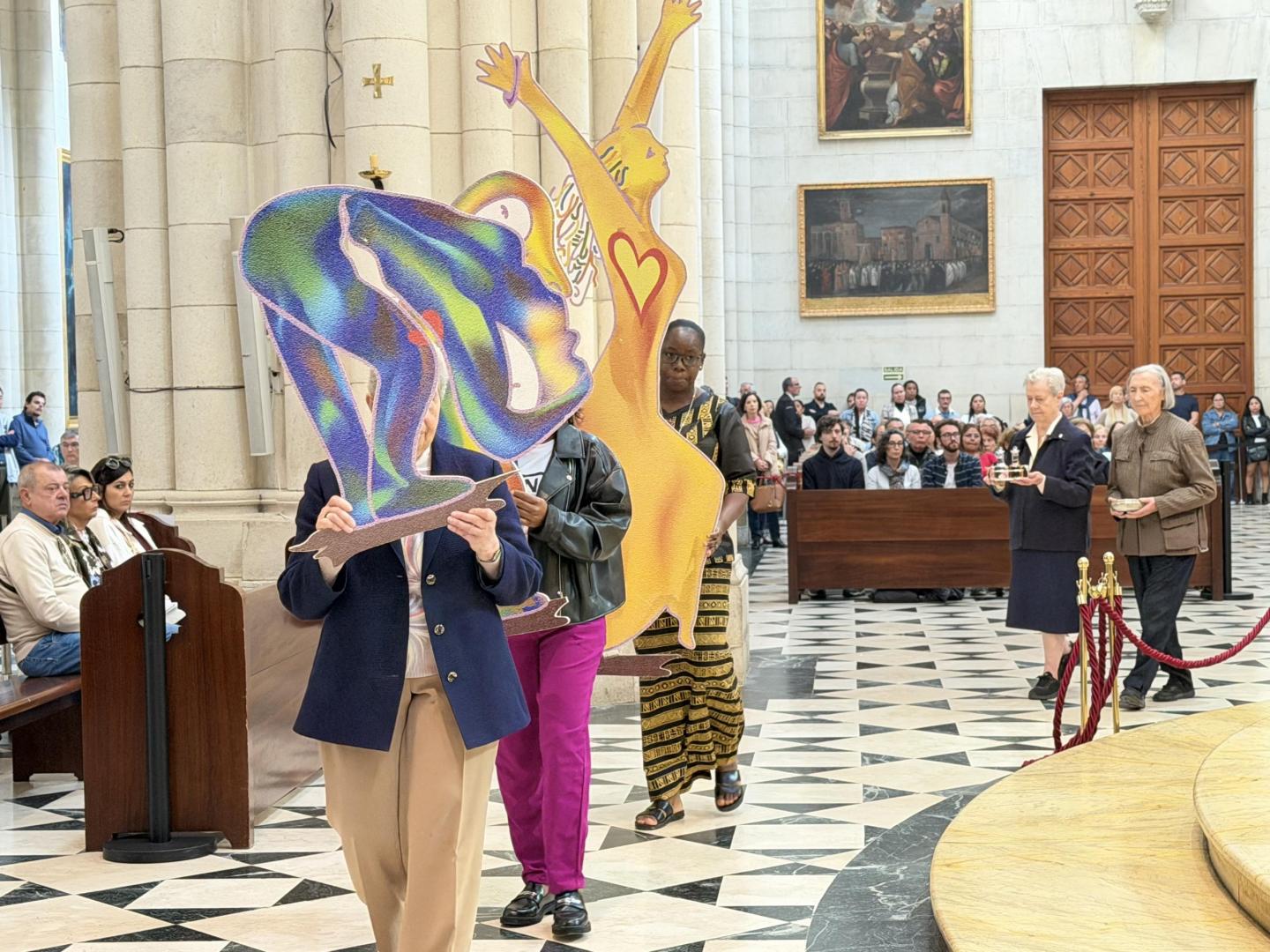 Al comienzo de la Eucaristía se realizó un gesto simbólico cargado de fuerza y fe: varias personas víctimas de la trata colocaron unas cadenas ante el altar, signo del dolor y la esclavitud que han padecido. Un gesto que, como explicó Segovia, expresa la confianza en el amor de Cristo que rompe toda esclavitud y transforma el sufrimiento en libertad.