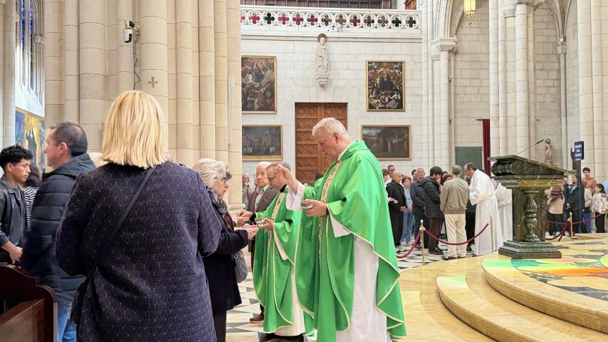En su homilía, José Luis Segovia transmitió el saludo del cardenal José Cobo, que no pudo asistir como hubiera deseado, y recordó que la Palabra proclamada “nos invita a cuestionar nuestra forma de relacionarnos con Dios”, advirtiendo contra la tentación de “quienes se consideran justos y miran a las demás personas por encima del hombro”. Inspirado en la parábola del fariseo y el publicano, Segovia señaló que Dios se pone amorosa y descaradamente del lado de las víctimas.