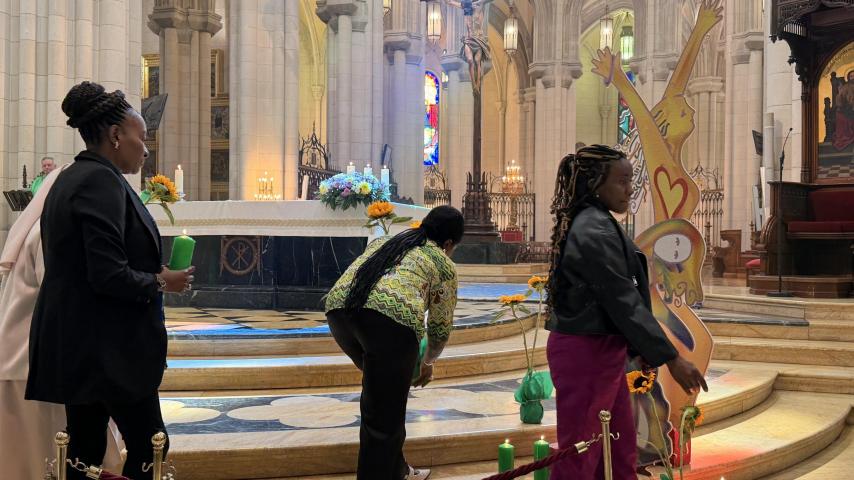 Al finalizar la Eucaristía se tuvo un gesto de fuerte carga simbólica: las cadenas colocadas ante el altar fueron rotas, como signo de la liberación que brota del amor de Dios y de la esperanza que anima el camino de quienes han sufrido la esclavitud de la trata.