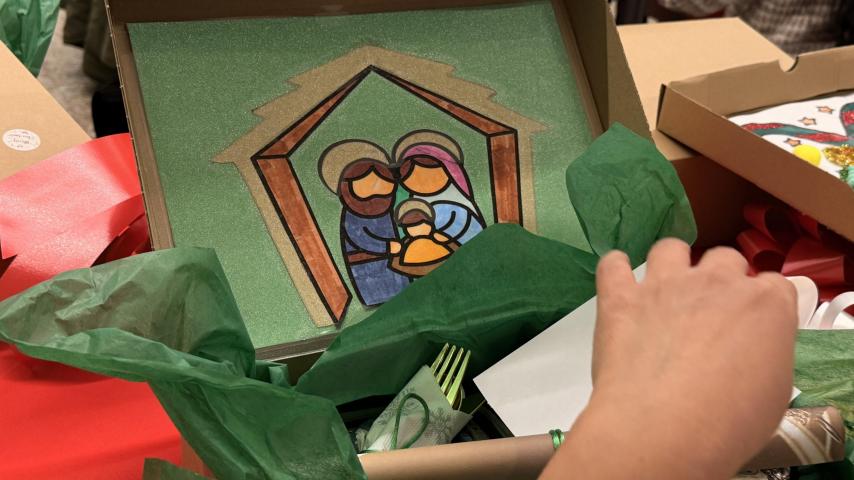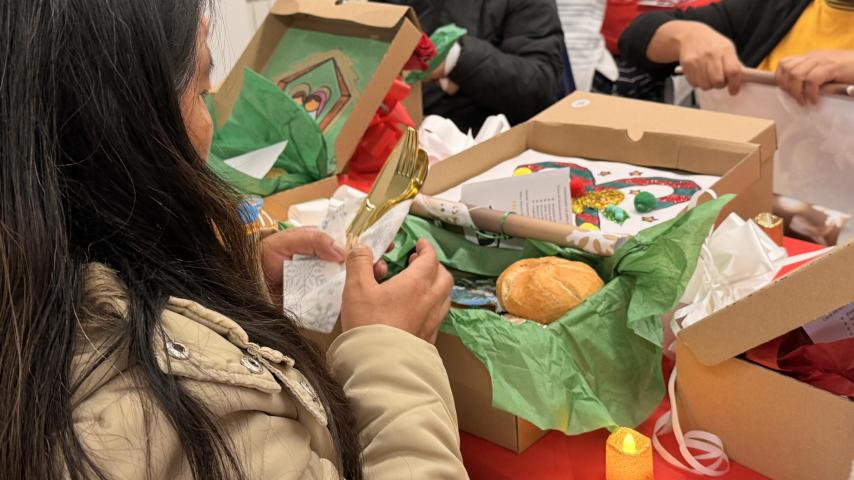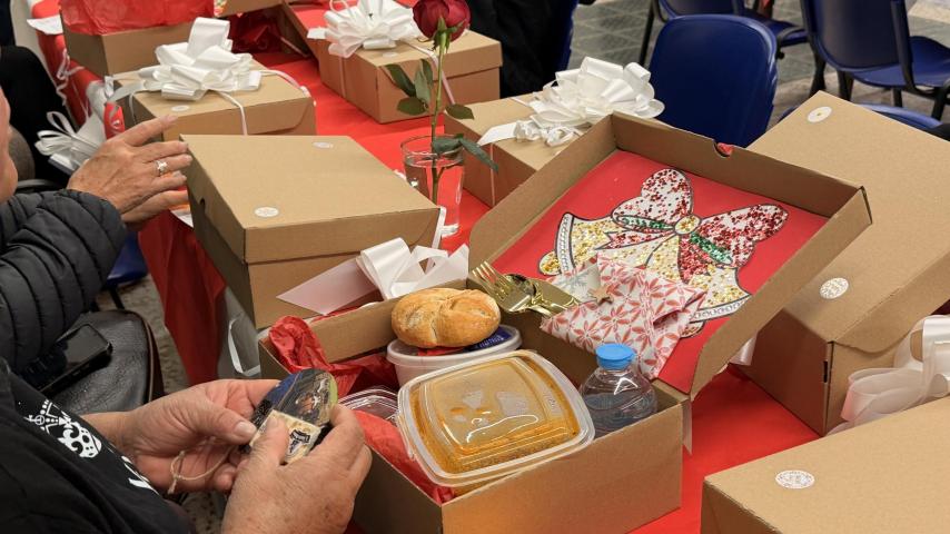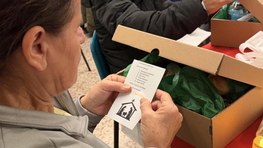 La comida llegó en cajas preparadas en un colegio, con dibujos hechos por niños que, sin saberlo, enviaron un “pedazo” de alegría a quienes más la necesitaban. Una caja de Navidad compartida.