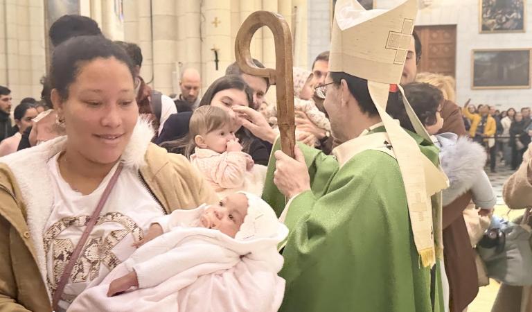 Durante la homilía, el arzobispo recordó que «entre la vida de nuestra ciudad, con sus ritmos, sus heridas y sus esperanzas, Dios sigue saliendo a nuestro encuentro», subrayando así la presencia de Dios en la vida cotidiana y en las realidades concretas que atraviesan las personas y las familias. En este sentido, animó a cuidar y acompañar la vida desde sus inicios, resaltando el papel insustituible de las familias y de la comunidad cristiana como espacios de acogida, protección y esperanza.