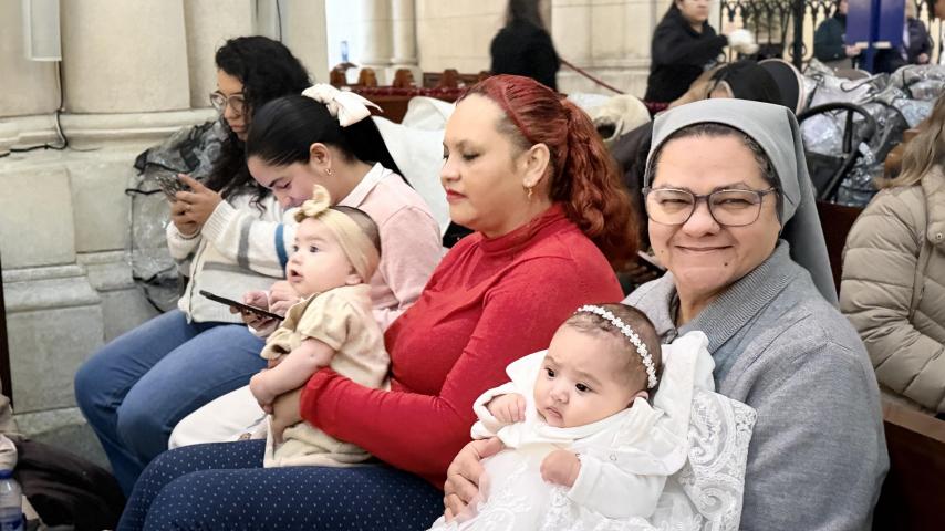 La celebración contó de manera especial con la presencia de las mamás del Hogar Santa Bárbara, que participaron en la Eucaristía junto a sus bebés. Su presencia puso rostro concreto al cuidado de la vida más frágil y a la misión de acompañar procesos de maternidad en contextos de vulnerabilidad, en sintonía con el sentido profundo de la Candelaria como fiesta de la luz y de la presentación confiada de la vida.