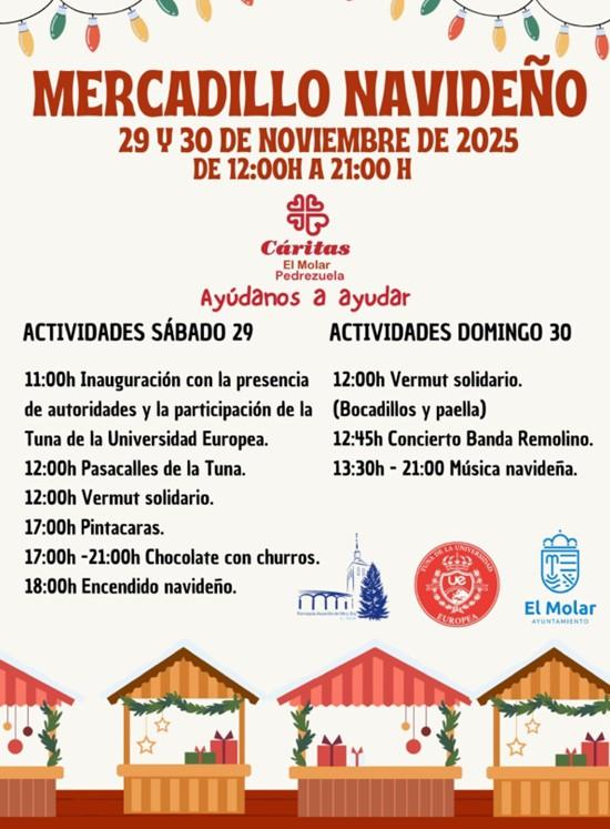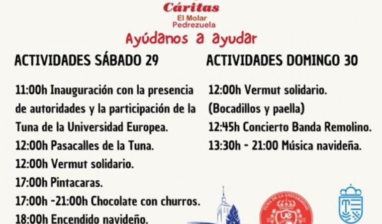 - Cáritas Parroquial El Molar los días 29 y 30 de noviembre, de 11 a 21 horas el sábado y de 12 a 21 horas el domingo.
