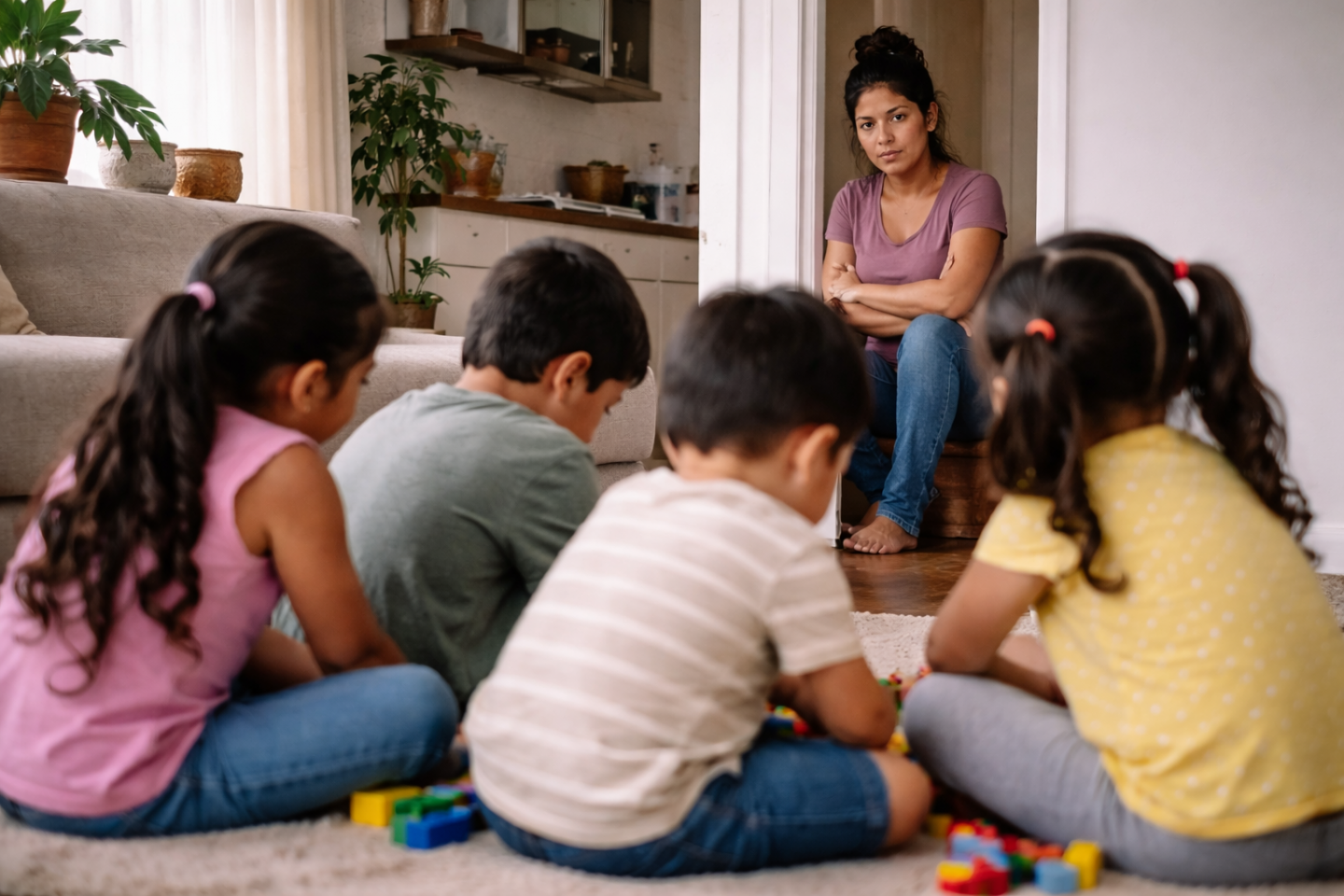 Matrimonio con cuatro hijos menores. Ella trabaja en empleo doméstico y él en la construcción. Caso 71.826