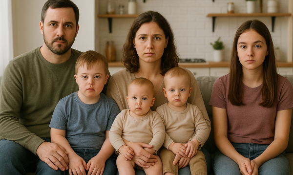 Pareja con cuatro hijos menores, los pequeños mellizos de 15 meses, y uno con síndrome de Down. Caso nº 71.744